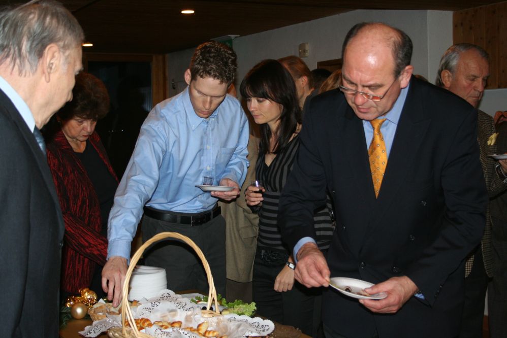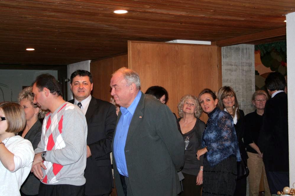 U predvorju je kao predjelo bio prire�en ap�ro u ve� poznatom Aninom stilu, znatno oboga�en Maricinim kiflicama, a "pri ruci" je bio i �tand s pi�em. Poslije ugodnog �askanja u predvorju, gosti su polako po�eli zauzimati svoja mjesta u dvorani, koja je bila popunjena doslovno do zadnjeg mjesta. Uz mnoge drage i vrijedne goste, Adventsku ve�er je svojim prisustvom po�astila i uveli�ala i gospo�a Sanja Javor, konzul savjetnik pri Generalnom konzulate RH u Z�richu, s pratnjom.