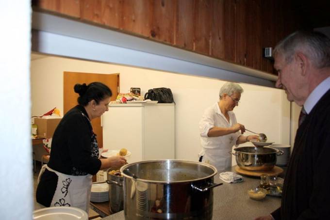 Zum Abendessen wurden Stockfisch auf dalmatinische Art und Sauerkrautwickel offeriert und obwohl der Abendessen auf dem Prinzip der Selbstbedienung durchgeführt wurde, die fleissigen Frauen in der Küche hatten alle Hände voll zu tun.