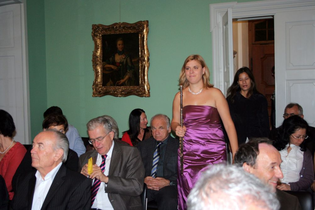Nennen wir diesmal nur die letzte Auszeichnung von Ivana Zahirovi�, von welcher Ivana am 29. September, einige Tage vor dem Auftritt in Baden erfahren hatte, den 1. Platz am Alexander & Buono International Flute Competition 2010 in New York. Diese Auszeichnung wurde mit einem Auftritt im Carnegie Hall u New York belohnt, und da Ivana Zahirovi� für diesen Auftritt selbst die Komposition und die Begleitung wählen darf, entschied sie sich für die Fantaisiesur 'Der Freischütz' für Flöte und Klavier von Paul Taffanel, die sie im Carnegie Hall, wie in Baden, mit der Klavierbegleitung von Mia Elezovi� ausführen wird. Das ist die Komposition die wir nach dem frenetischen Schlussapplaus im Konzert in der Villa Boveri als Zugabe geschenkt bekommen haben.