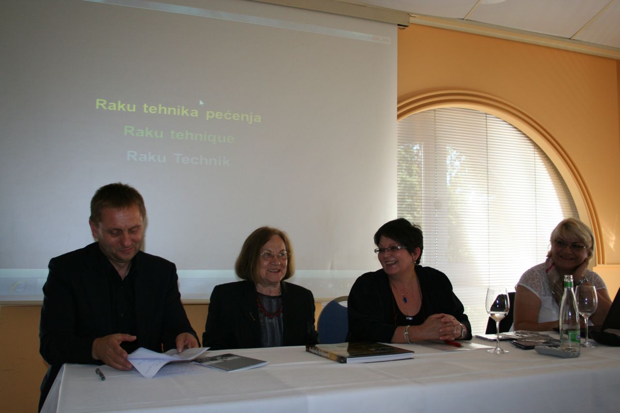 Mjesta za voditeljskim stolom zauzeli su Sandi Pau�i�, Dušanka Jablanovi�, prof. Višnja Slavica Gabout i �eljka Bratolji�-Melkay, jedna od dopredsjednica Kluba i umjetnica iz „Kravate“ koje su izlo�ile svoje radove, koja je preko beamera sva izlaganja popratila projekcijama radova prisutnih umjetnica.