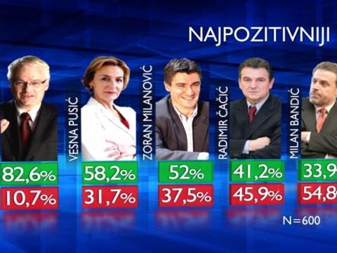 Laut einer telefonischen Umfrage der Agentur GfK f�r das Fernsehen RTL gilt Vesna Pusi� nach Ivo Josipovi� als beliebteste Politikerin. Die Umfrage wurde zwischen dem 1. und 5. M�rz 2011 durchgef�hrt, bei einer Stichprobe von 600 Leuten �ber 18 Jahren. Unter den Parteien erhielt die SDP 30%, w�hrend die HDZ nur auf 6,6 W�hlerprozente kam. Anfang M�rz wussten rund 42% der Befragten noch nicht, welcher Partei sie bei den kommenden Parlamentswahlen ihre Stimme geben werden.