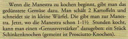 Da man die Manestra als Vorspeise oder als Hauptgericht geniessen kann, beachte man die Mengenangaben. Falls Sie sie als Vorspeise vorbereiten, reicht die unten angegebene Menge des Rezeptes für 10 Personen, als Hauptgericht macht sie 5 Leute satt: