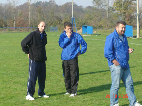 Zajedni�ka fotografija Croatie i Mladosti sa sucem Ga�i�em i predsjednikom NK Mladost,Markom Matanovi�em