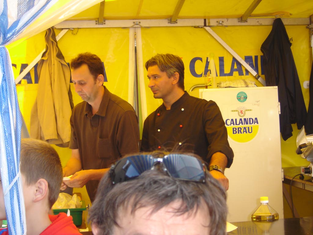 85 000 posjetilaca za tri dana nije mala stvar za grad od nekih 35000 stanovnika, kao �to je prijestolnica kantona Graub�nden Chur. Tradicionalna Churerfest po 18-i put je svoja vrata otvorila mno�tvu posjetilaca i udrugama sa svih svjetskih strana. Da su Hrvati itekako prisutni u prijestolnici najve�eg �vicarskog kantona ponovno su pokazali �lanovi Hrvatske zajednice i NK Croatia 92 Chur. Ove godine su slijede�i ideju rizni�ara, Marka Radata, iznenadili �vicarsku javnost te tradicionalne �evap�i�e zamijenili pe�enjem odojka na ra�nju �to je izazvalo pravu senzaciju me�u posjetiteljima. Ne o�ekuju�i takvu navalu, �lanovi Hrvatske zajednice su pripremili dva odojka, jedan u vrijeme ru�ka te jedan nave�er. I jedan i drugi su rasprodati u roku od nepunih pola sata a oni koji su �eljeli sebi obezbijediti porciju pe�enke su strpljivo �ekali i po dva sata da dodju na red i kupe porciju. Ve�ina njih su bili �vicarci kojima je to bila jedna velika novina.Dosta ih je ostalo praznih ruku jer toliko porcija, koliko je bilo potra�nje, jednostavno nije bilo. Treba ista�i da su odojci pe�eni na licu mjesta a ne doneseni pe�eni, te da na�i kuvari nisu imali vremena da sa�ekaju da se barem ohladi nego su morali onako vru�e sje�i i rasporediti u porcije da bi zadovoljili goste koji su strpljivo �ekali u redu. Na�alost mnogi nisu uspjeli do�i do porcije �eljenog pe�enja a �to je vi�e razo�aralo na�e "doma�ine" nego goste.