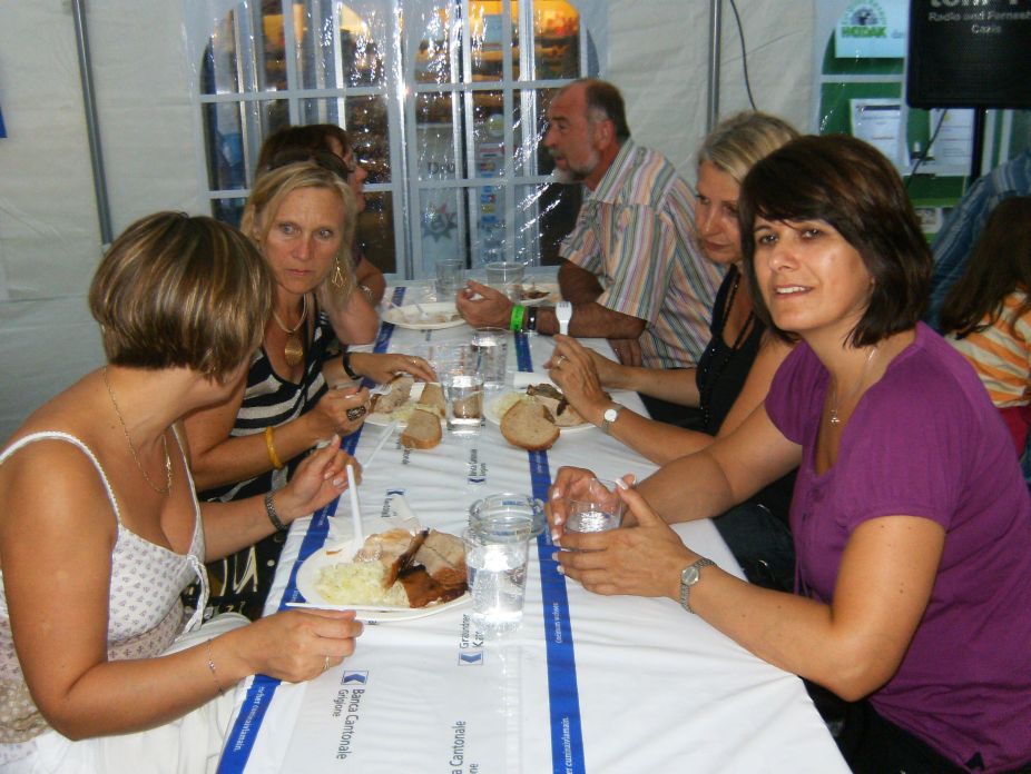 Ova 20. jubilarna fešta nadmašila je o�ekivanja svih. Ve� na otvorenju u petak nave�er, uz prekrasan vatromet, osjetilo se da bi fešta mogla biti za pam�enje. U stari grad, gdje se fešta odr�ava, u subotu nije mogla “stati ni igla više”. Nedjelja je, uobi�ajeno malo mirnija, što se za hrvatski prostor ne bi moglo re�i. Štand Hrvatske zajednice, u usporedbi s mnogi drugim velikim štadnovima relativno mali, bio je jedan od najposje�enijih. Odojak ali i izvrsna pljeskavica s umakom i salatom, pripremana po ideji kuharskog majstora Jurice bili su magnet koji je u vremenu kad na drugim štandovima nije bilo ni „�ive duše“ uvijek iznova privla�io ne samo Hrvate nego i veliki broj Švicaraca. Hrvatski se šator jednostavno nije moglo zaobi�i. Me�u posjetiteljima bili su me�utim i mnogi drugi, ljudi iz doslovce svih krajeva svijeta: Japanci, Afrikanci, Nijemci, Srbi, Slovenci, Bolivijanci, Meksikanci, Šve�ani, Englezi, Makedonci, Poljaci, Talijani, Portugalci…da ne nabrajamo više. Neke od njih uhvatila je i naša kamera.