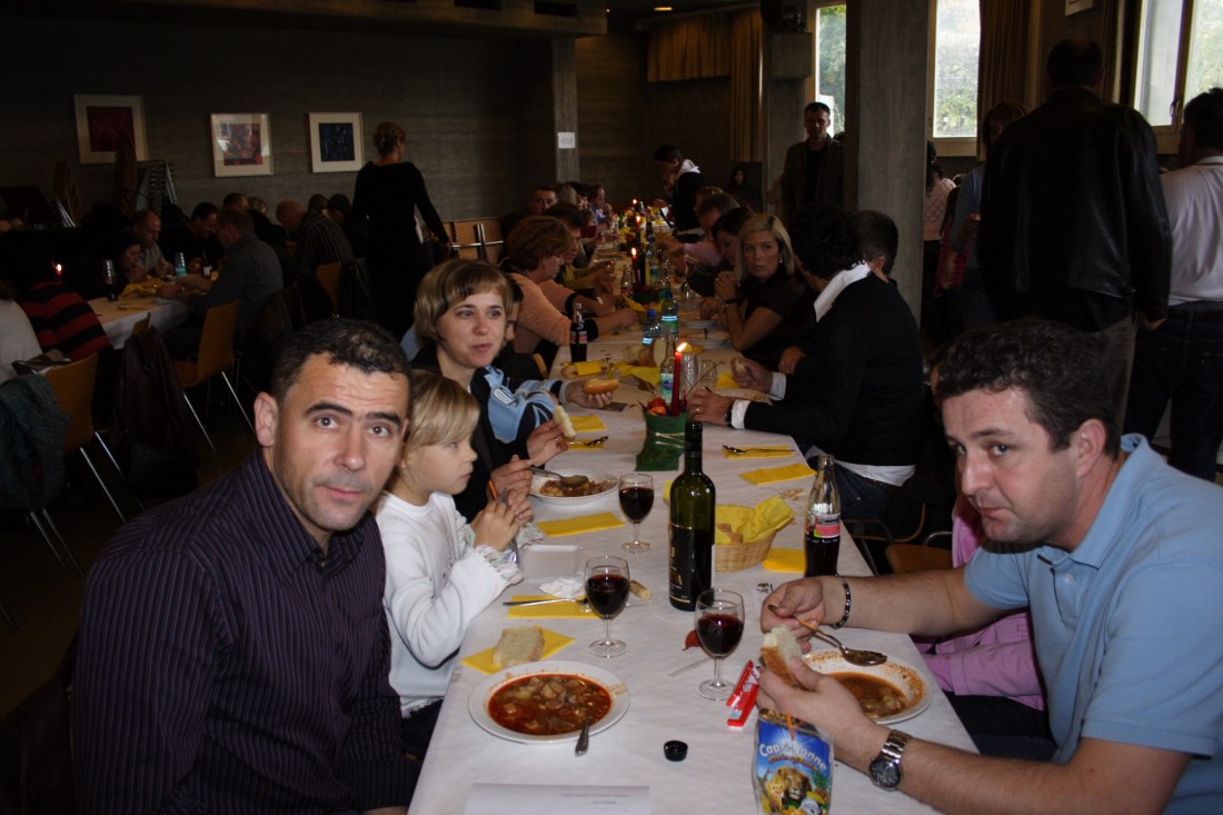 U nedjelju 04.11.2007. poslije sv. mise u Tiefenau �lanice vrijedne Hrvatske zajednice �ena koja djeluje pri Hrvatskoj katoli�koj misiji Bern su ponudile vjernicima svoju ve� tradicionalnu Jesenju - lova�ku juhu. Odziv vjernika je bio vi�e nego odli�an a me�u ostalima primjetili smo i tek pristiglog veleposlanika Republike Hrvatske u �vicarskoj Jak�u Mulja�i�a. Zanimljivo je da vrijedna Zajednica tjekom godine svojim aktivnostima, prodajom kola�a poslije sv. mise, korizmenom juhom, jesenjom juhom i proljetnim obiteljskim grilom, svake godine prikupi i u domovinu po�alje preko 15 ooo �vicarskih franaka.