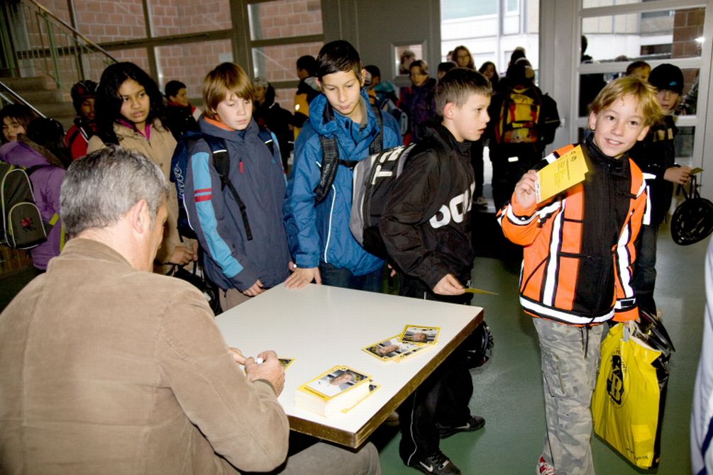 U srijedu, 11.11.2009., posjetio je Vladimir Petkovi� razrede 6a i 7a u Schönbühlu. Mi smo ga �ekali u dvorani za tjelovje�bu. Na po�etku nam je pri�ao što sve igra�i Young Boysa do�ive tijekom dana. Saznali smo da moraju platiti kaznu ako se sa zakašnjenjem pojave na treningu. Kazna im prijeti i ako dobiju crvenu kartu. On nas je upozorio na to, da je jako va�no prvo završiti školu, i nogometom se baviti kao hobijem. Tek poslije toga mo�e se sasvim posvetiti sportu.