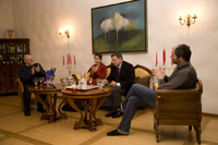 Kada daljnjih pitanja vi�e nije bilo, gospodin Veleposlanik je sve prisutne pozvao na nastavak ugodnog dru�enja uz �a�icu vina i osvje�avaju�ih pi�a i uz pripremljeni ap�ro, pa smo i u nastavku ve�eri u individualnim razgovorima s gostima iz Hrvatske saznali puno detalja iz �ivota i rada hrvatskih knji�evnika. �