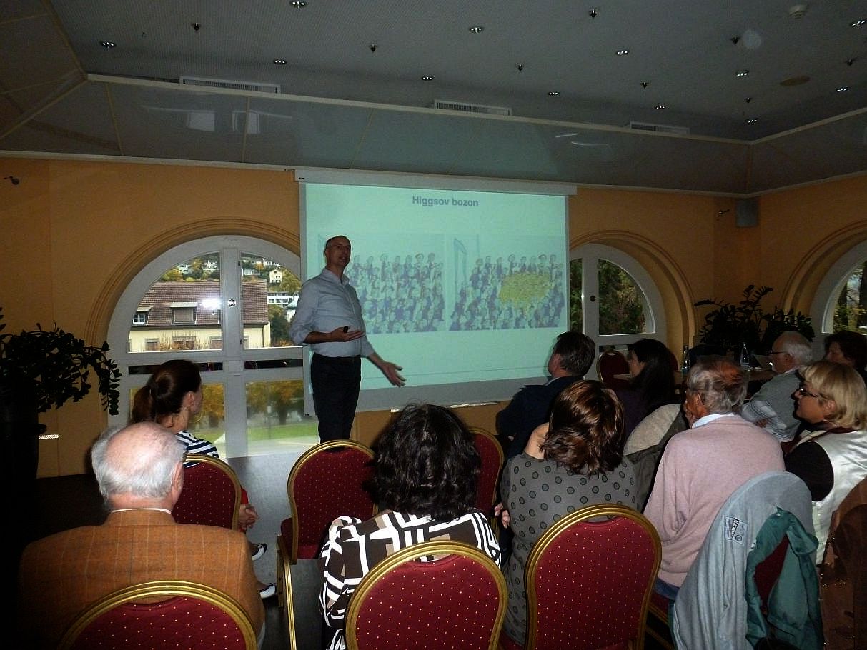 U nedjelju, 11. listopada 2015., odr�ano je u Stadtcasinu Baden, u organizaciji Hrvatskog kulturnog kluba Švicarske, predavanje prof. dr. sc. Ivice Puljka pod naslovom“Pri�a o svemiru i Higgsovom bozonu“.
