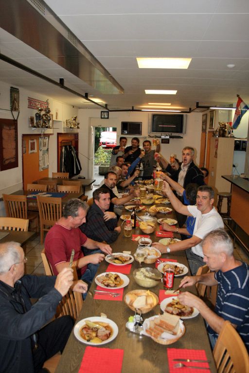 Nakon utakmice, igra�i Zagreba su se preselili u klupske prostorije, gdje su im „majstori od ku�ine“, Marijan Dreno, Jozo Budimir i Ivo Saki�, priredili vrlo ukusan ru�ak s pe�enjem ispod peke te se, uz pivo, još dugo prepri�avalo o prilikama i neprilikama s protekle utakmice.