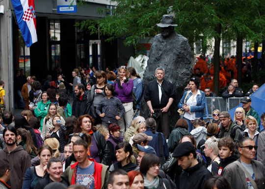 "Ono što ovdje ne valja je sustav. Institucije bi trebale zastupati nas gra�ane, a oni su oteli dr�avu", rekao je Celakoski. Varšavsku ulicu Celakoski je nazvao "ki�mom grada Zagreba" i dodao da �e se ta ki�ma "mo�i oduprijeti onima koji su navikli uzimati ono što je naše".